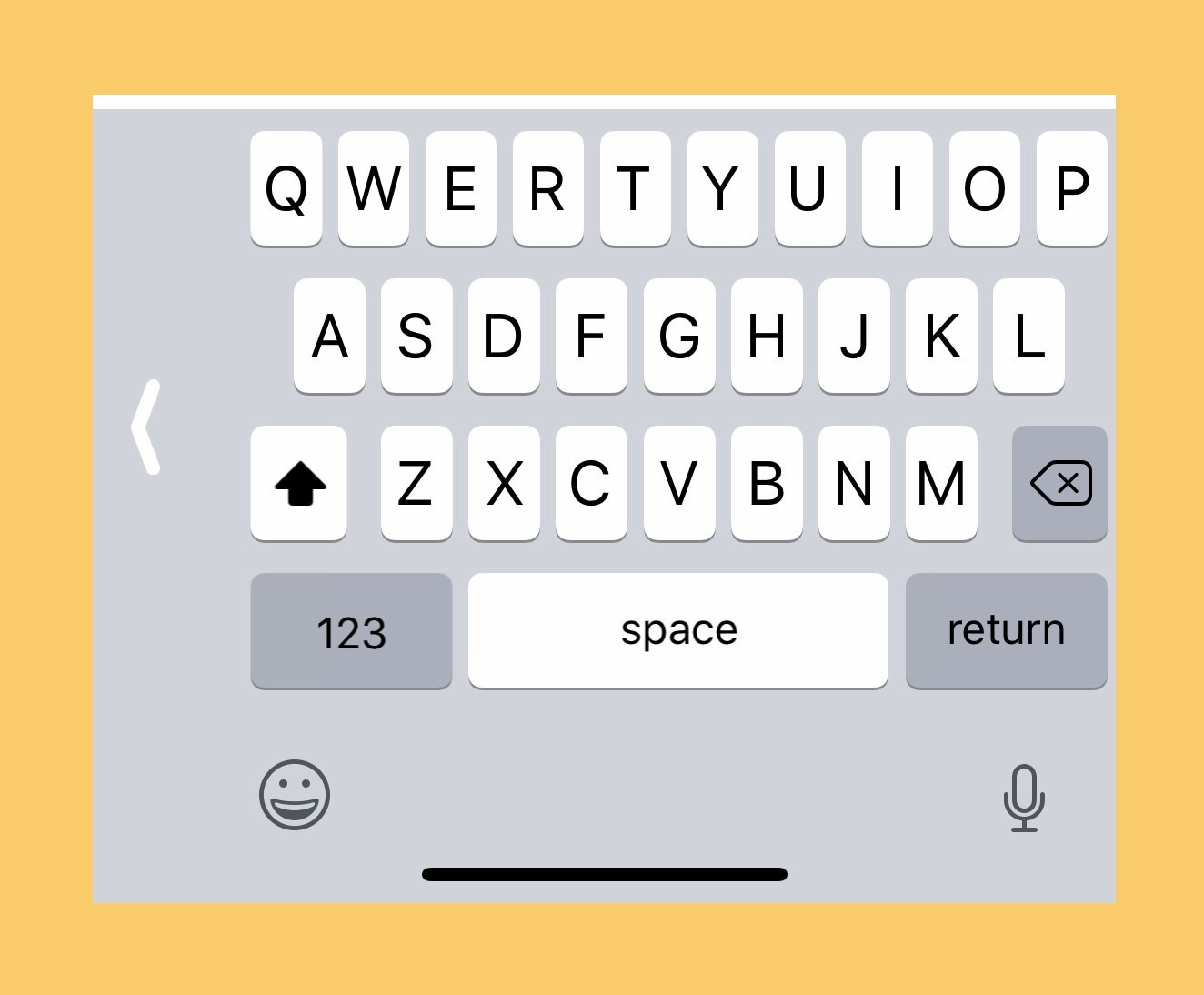 但iOS 12及之后的版本出现了一个非常方便的功能,该功能让你可以用一只手打字,这就让打字变得更容易了。首先,进入设置,然后点击通用>键盘>单手键盘,选择左或右(根据你是左撇子还是右撇子选择该选项)。