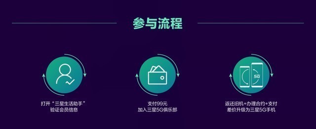 等到今年下半年三星5G手机上市后,此前已加入该俱乐部的用户,在5G手机上市的60天内,支付一定的差价并办理运营商指定套餐,即可置换成三星最新5G手机。