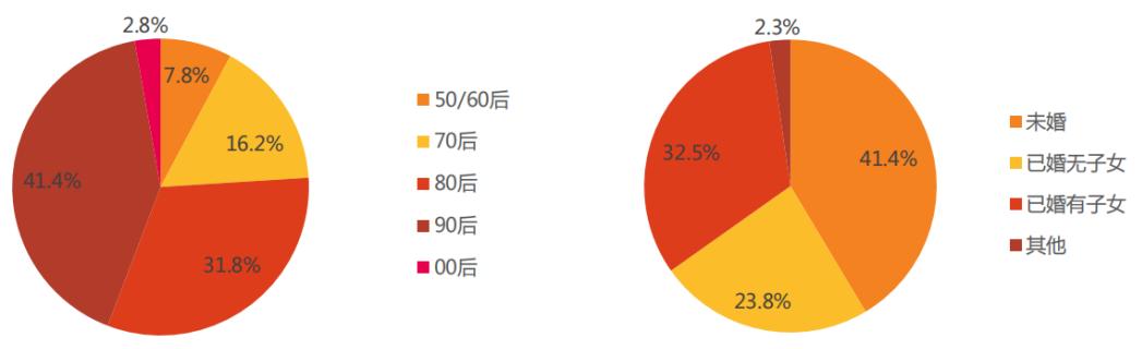 图:我国养宠人群年龄构成及婚姻状况