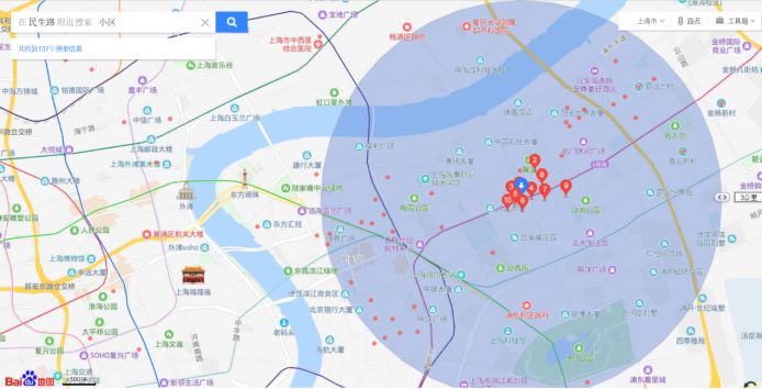 上海是国内养宠人数排名前三的城市之一,根据我们从房产中介了解到的情况,以及百度地图上提供的数据,以上海浦东新区民生路为圆心,其周边半径三公里内的覆盖小区数量约为120个。