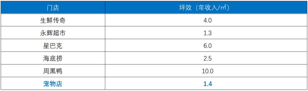 图:宠物店与其他线下店坪效对比