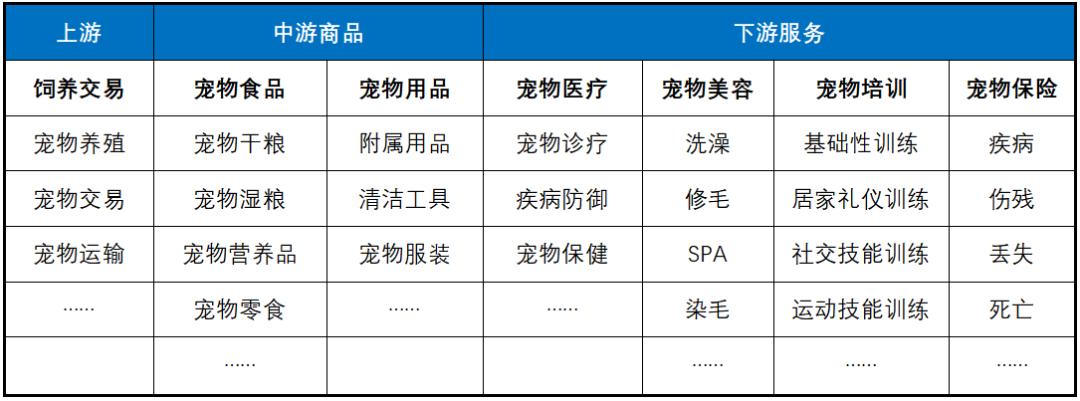 从整个产业链来看,宠物行业最上游的是宠物活体养殖及交易,中游包括宠物食品、宠物用品的生产及销售,下游则是宠物服务,包括宠物医疗、美容、培训等。