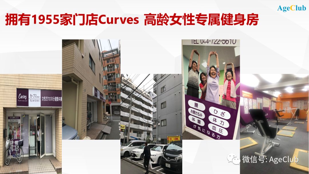 调研的第一个案例就是日本高龄女性专属健身房Curves,Curves是我们之前分析过的一个日本活力老年产业非常经典的案例,是我们的高级知识顾问村田裕之教授在2000年左右从美国引入日本并进行本土化改造的经典案例,经过近20年的发展,在全日本拥有1955家连锁店,并且还在持续扩张。