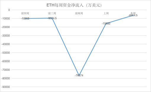 ETH 本周全网资金净流出超过 6000 万美元。从趋势来看,流出资金数额缩小,短期内价格可能小幅回升或者继续保持震荡。