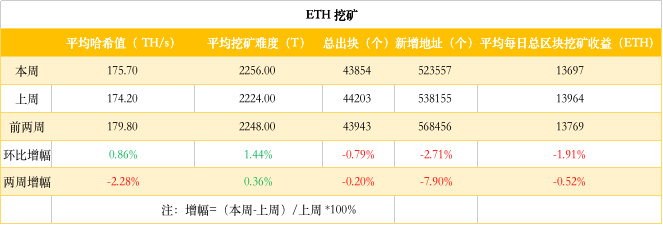 etherchain.org数据显示,目前平均挖矿难度 2256 T,环比微涨 1%;平均算力微涨 1%,暂报 175.7 TH/s。