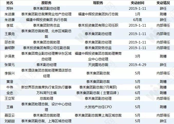 在赢商网统计的50多家企业中,包括泰禾集团、华润置地、万科集团、保利集团、建发股份在内的5家企业均有9人次以上人事变动。