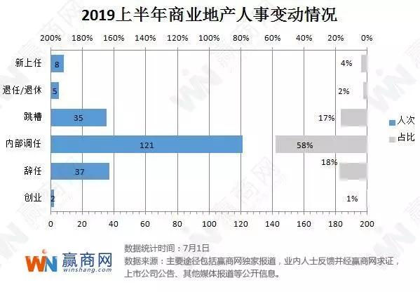 从变动情况来看,据赢商网不完全统计的上半年203位高管职位变动中: