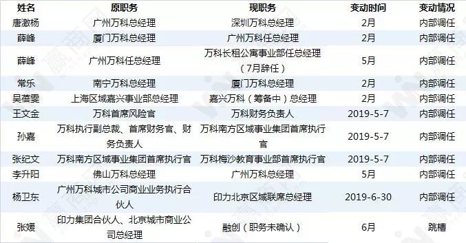 2019年以来,万科南方区域人事变动频繁,深圳、厦门、广州等几大重地的总经理先后出现了换防。