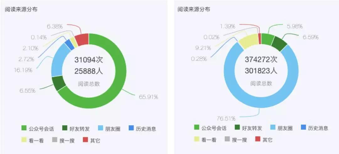 对于公众号文章来说,爆款的阅读量应该绝大部分来自“未关注用户”,而不是公众号会话。文章的阅读来源分布是判断爆款的标准之一。