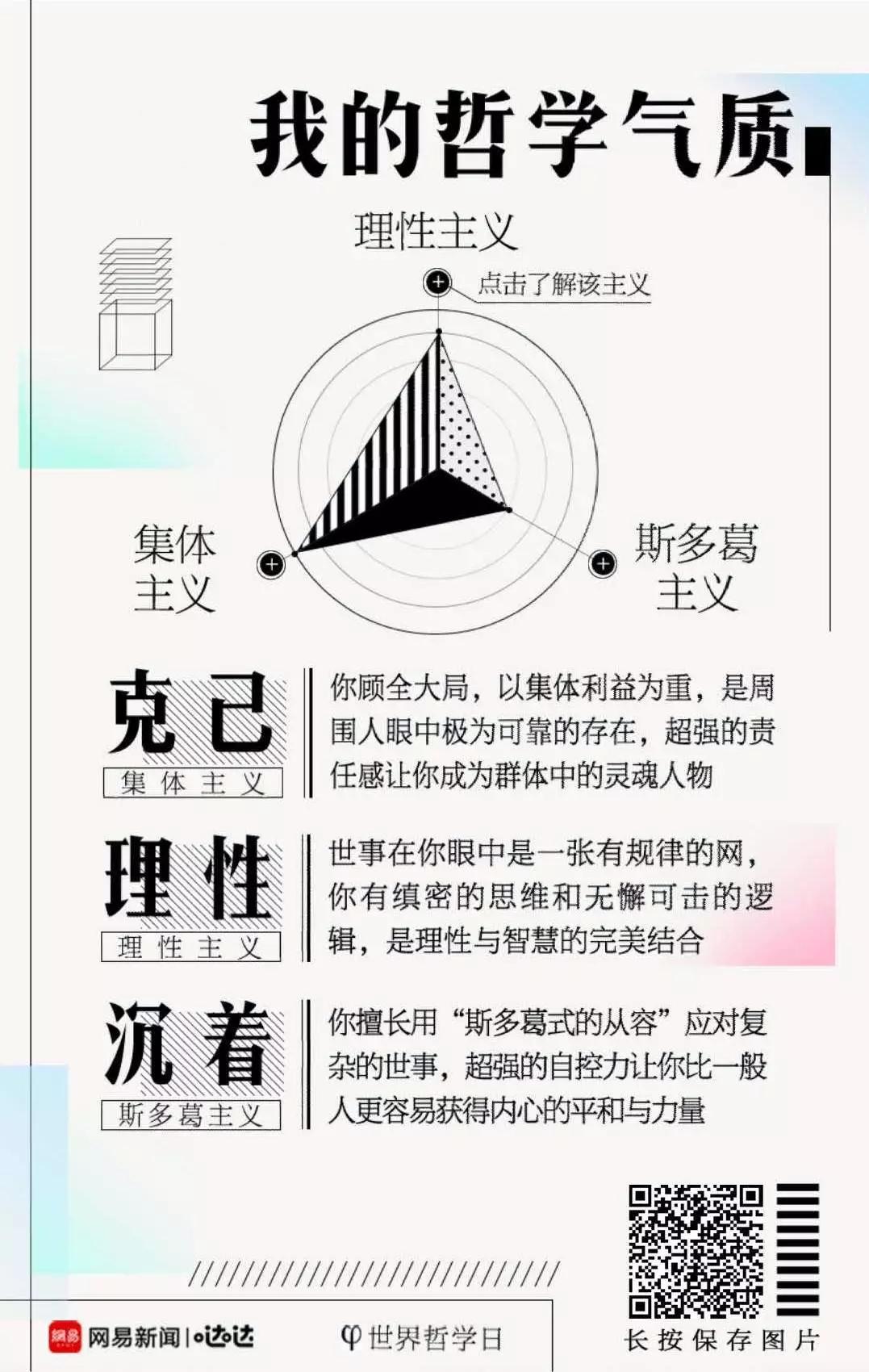 比如测试H5《测测你的哲学气质》,在答题结束后,会生成一张人格分析海报。