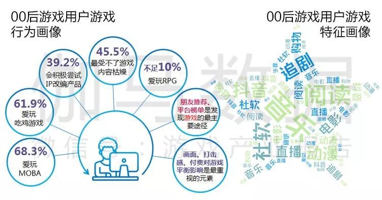 伽马数据(微信号:游戏产业报告)发布的《2019中国游戏产业半年度报告》重点分析了00后的用户行为。大量的用户调研数据显示,MOBA、射击类游戏位居00后偏爱游戏类型的前两名,而在国内游戏数量和市场份额均较高的RPG类游戏未得到他们的青睐。此外,00后喜欢的产品特征表现鲜明。