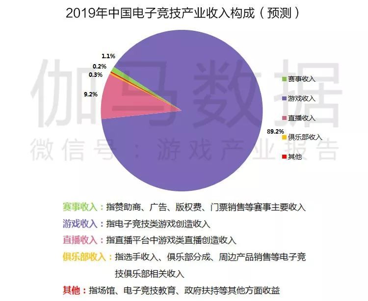 2019年,据伽马数据测算,中国电子竞技产业收入构成中,游戏收入占比达到了89.2%,其他环节收入占比将超过10%。对于电子竞技产业来说,收入结构的进一步丰富有利于提升产业链的稳定性,产业各个环节造血能力的增强也将持续壮大整体的产业规模。但目前电子竞技产业的赛事收入和俱乐部收入仍然占据较低比例,有赖于未来进一步挖掘商业化潜力。