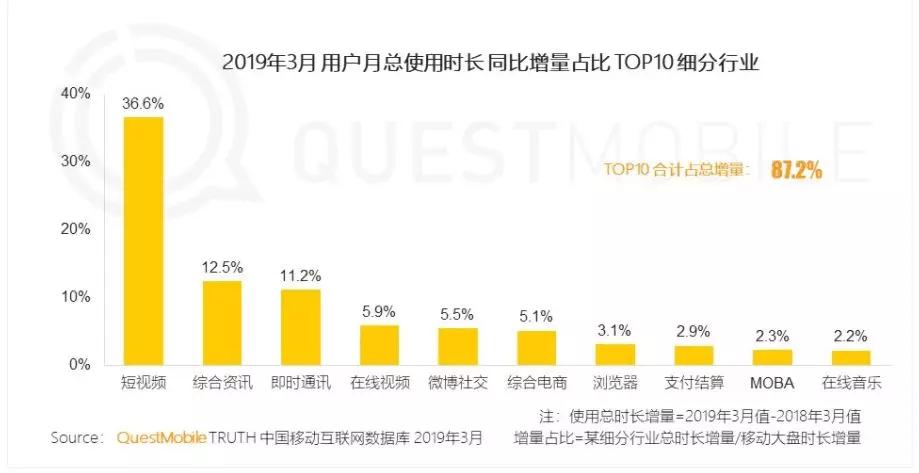 过去几年来,短视频成为了增长速度最快的一门生意。根据QuestMobile发布的《中国移动互联网2019春季报告》显示,2019年一季度,全国短视频用户达到8个亿,月活跃用户增长率达到了53.6%,是细分行业中增量最大的一个领域,短视频的月总用户时长增长了36.6%;行业渗透率达到73.3%,同比增长近20个百分点,是下沉区域渗透率增长最快的一个行业。