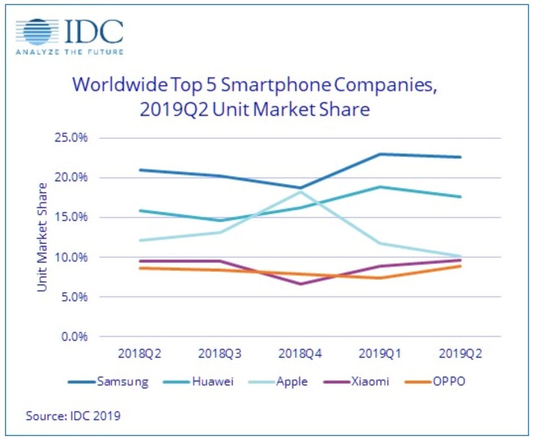 老虎证券投研团队认为,高通主营业务下滑的原因来自于4G智能手机销量下滑,根据市场研究公司IDC公布最新报告称,第二季度全球智能手机出货量同比下降2.3%。从手机厂商出货量来说,全球智能手机的领导者为三星,华为与苹果一般排在第二到三位,其次是OPPO和vivo以及小米。