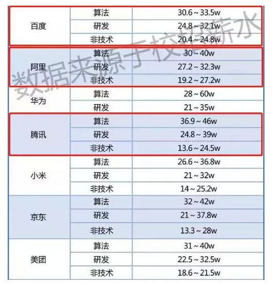一份2019互联网大厂校招薪水表显示,BAT的算法、研发岗位都是24w起薪,TMD的黑马字节跳动,算法岗位薪资甚至高达58w!