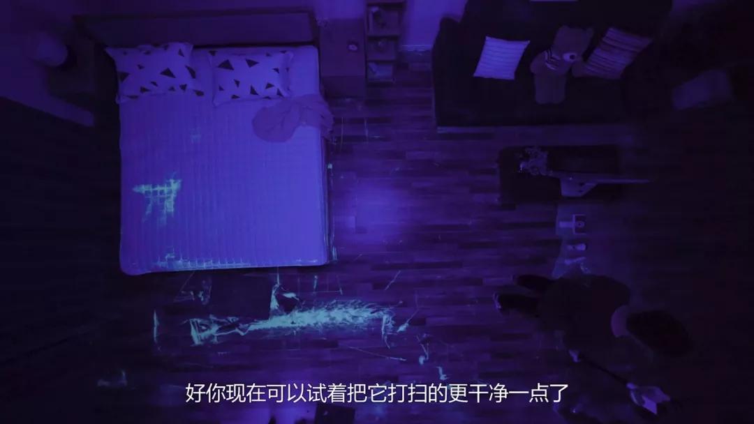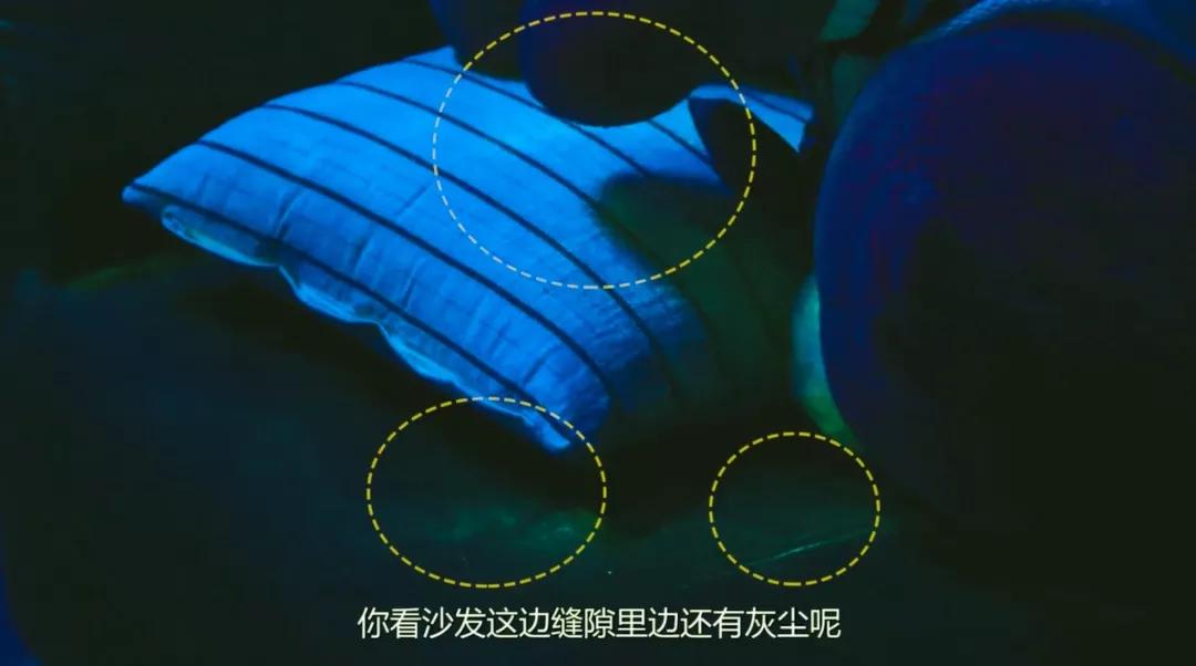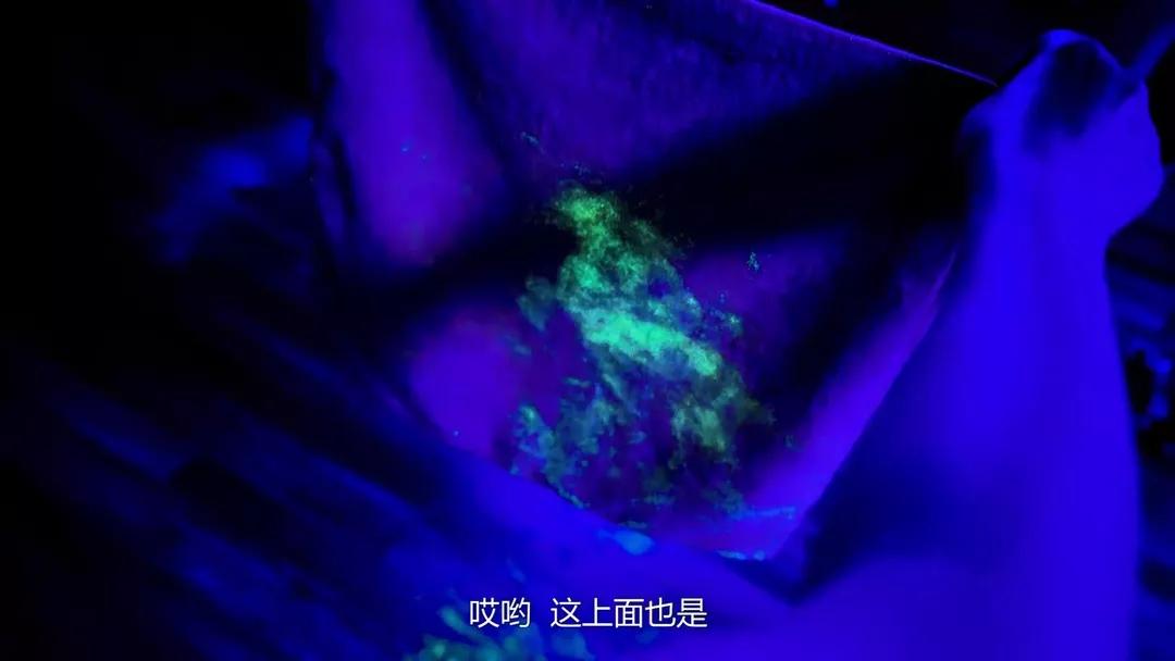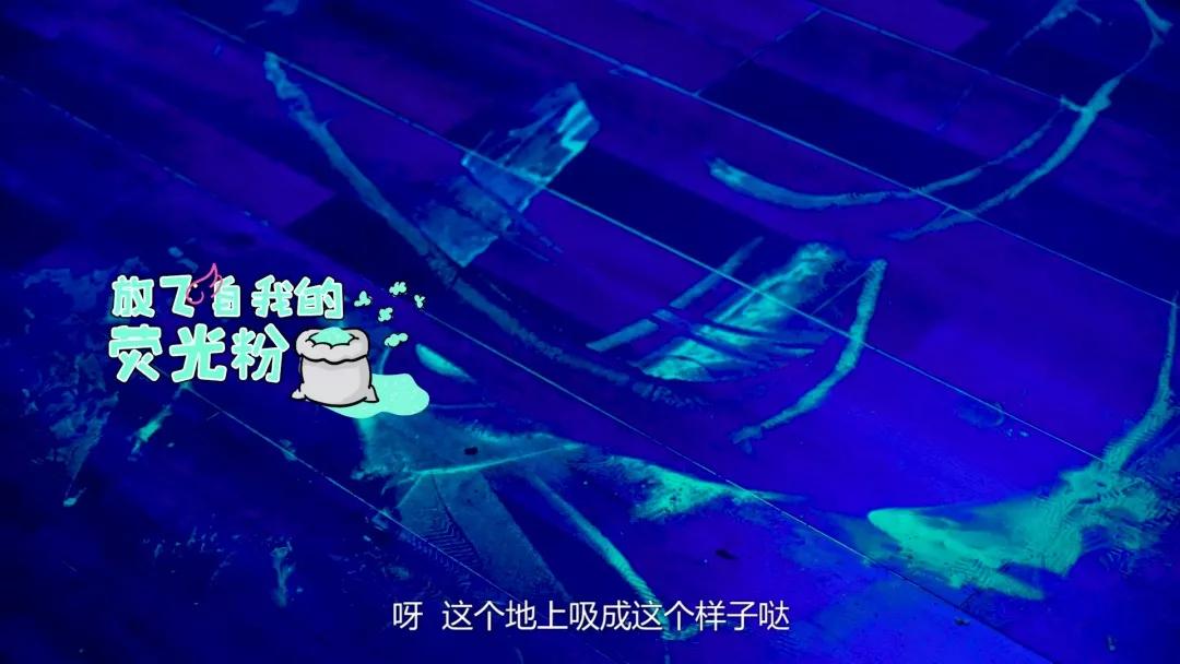 当挑战者自以为打扫干净了,超哥就会关上灯,残余的荧光粉闪闪发亮的时候,是不是真的干净就一目了然啦。