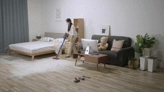 挑战完毕,戴森V11 Absolute的打扫效果堪称完胜,小张只使用了三种刷头,就把床上、沙发、地面和桌子打扫的干干净净。