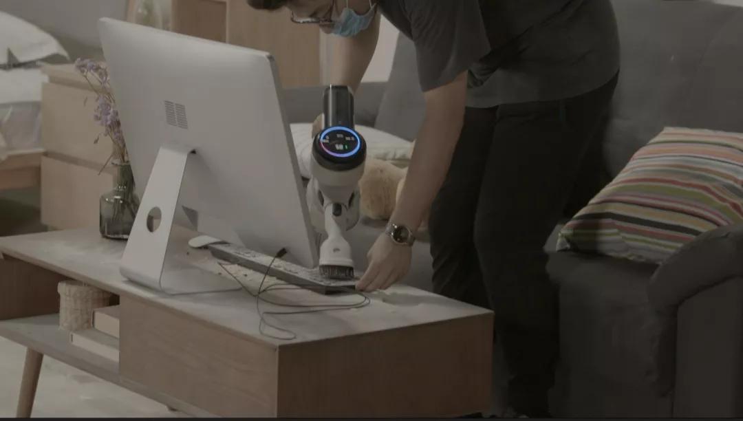 吸到桌面时,小余机智地换上了软毛宽嘴吸头,这个吸头在打扫键盘的时候格外好用。