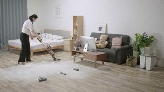 按这个仔细劲儿,打扫一遍房间就得累得够呛。好在手里的戴森V11 Absolute比较争气,吸力够大,吸头也好用,帮小张省了不少力气。只用了10分37秒,就把整个房间打扫得干干净净。