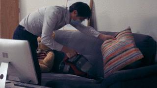 作为一个男孩子,小孙打扫起来真的是非常细心,靠垫背面、沙发缝里、玩具熊的毛都没有放过,仔细地吸了半天。最终花了16分49秒,小孙才打扫完毕。