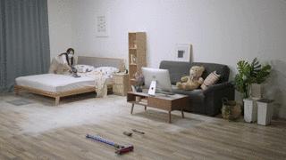 小余用起戴森V8 Fluffy果然是得心应手,只用了10分17秒,就把整个房间打扫干净了。
