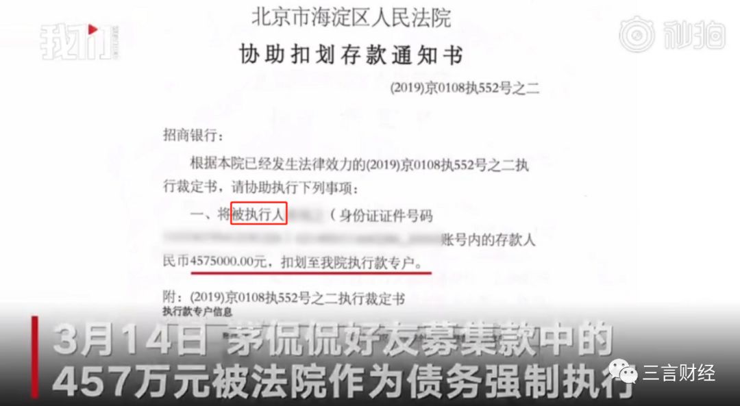 然而意想不到的是,今年3月14日,20名好友筹集的共570余万元资金中,475万元被法院当成茅母的财产作为债务划走。