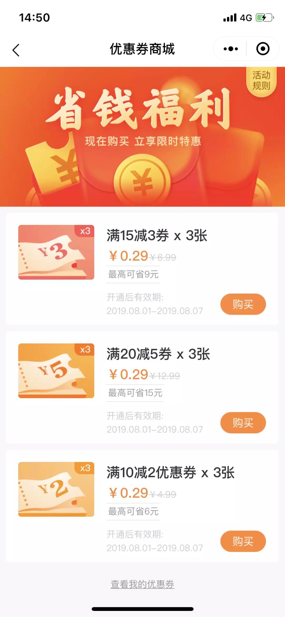 但便利蜂真的会亏钱做生意吗?Tech星球(微信ID:tech618)亲自测试了下,原本价格为8元的优惠券,现在仅需要0.29元,便可以获得3张优惠满减券,满减券又分为满15减3、满20减5、满10减2三种。