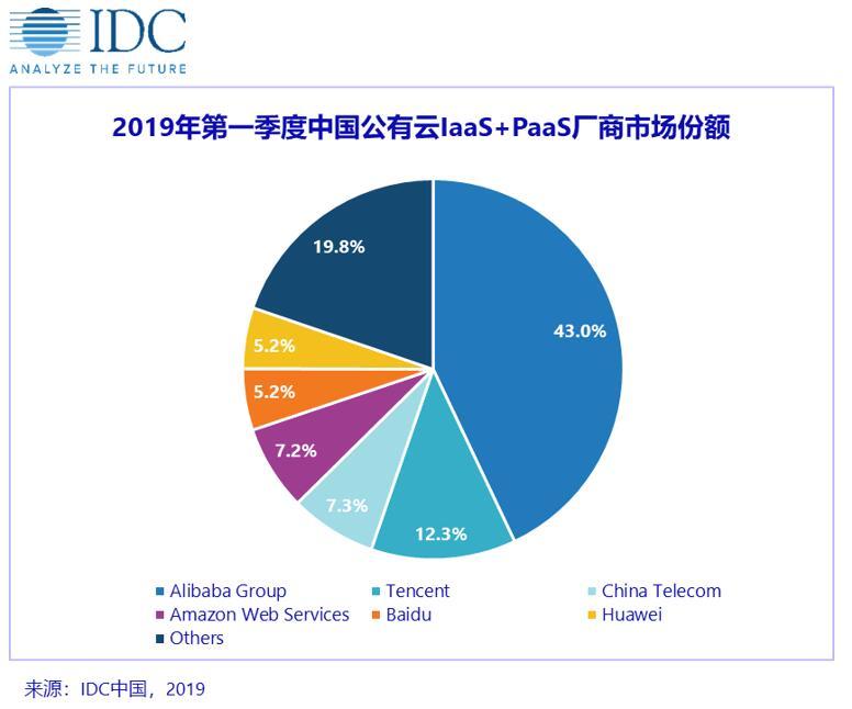 IDC:2019Q1中国公有云服务整体市场规模24.6亿美元,同比增长67.9%