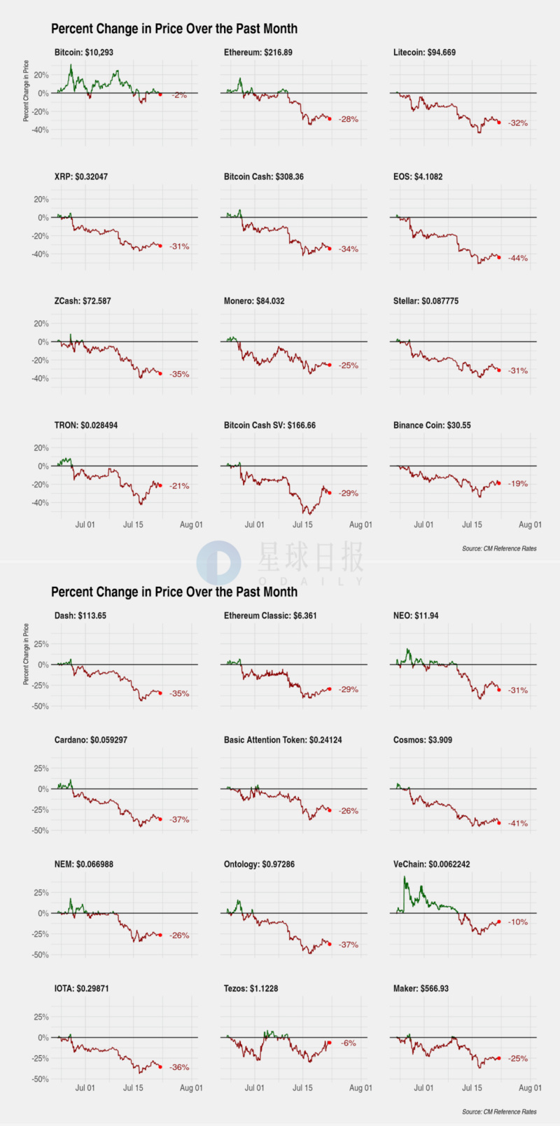 Coin Metric发布的报告则指出,在7月份,大多数山寨币跌幅超过40%,而比特币只下跌了2%。经济学家、加密分析师Alex Krüger表示,大多数山寨币已经“变成了不对称的赌注,回报不尽人意。因为山寨币在下跌时一直表现不及比特币,只有在上涨时才会偶尔跑赢比特币。”