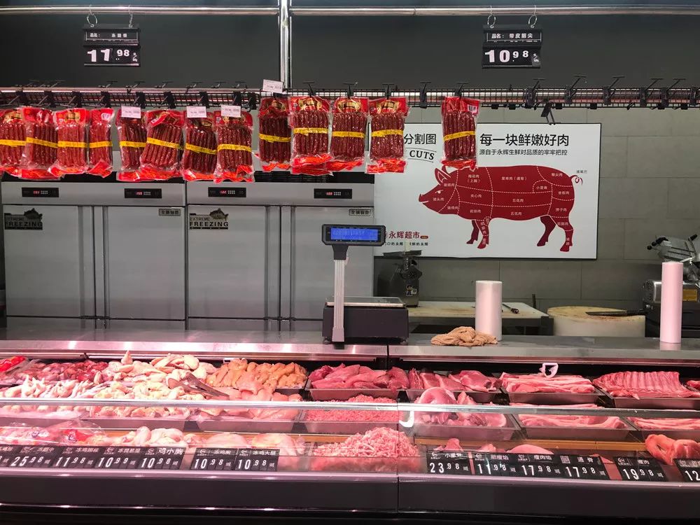 面积在500平方米左右的永辉Mini方庄店,商品以蔬菜、水果、水产、肉类等生鲜为主,占比达到60%,同时搭配杂百。所有的生鲜产品均以散装为主,永辉Mini在减少包装成本的同时,价格更低。