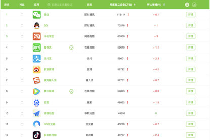 艾瑞国内移动APP指数前12位(2019.6)