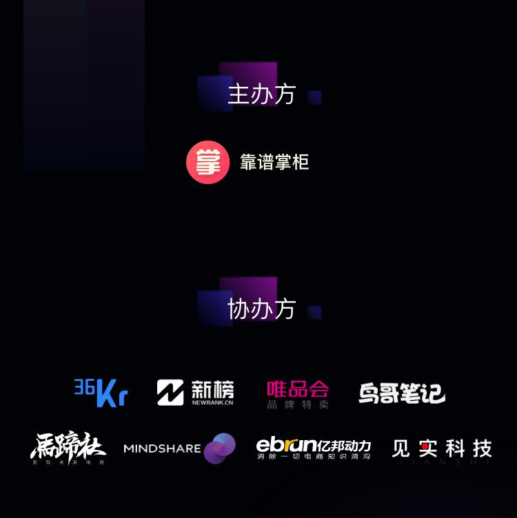 大会协办方:36kr、新榜、唯品会、鸟哥笔记、传立中国、见实科技等