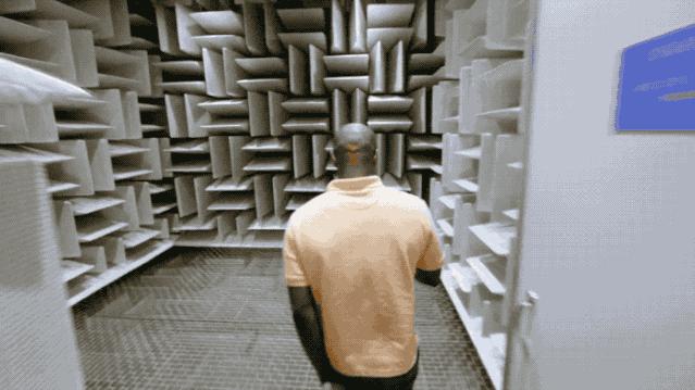 这个超级安静的房间,是微软在 2014 年竣工的,实验室处于六个混凝土层的中心,房间的天花板、墙壁和门上都布满了楔形吸音器,地板由钢丝绳制成,底部的防震支架则将实验室基体与大楼部分隔离开来,中间装有 68 个减震弹簧。