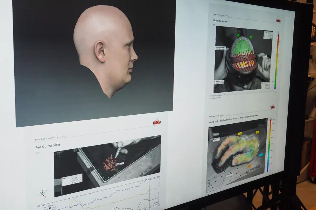 比如在键盘的测试环节中,开发人员会先使用高速摄像机录制「手指」敲击键盘的过程,随后会将视频降速,观察手指皮肤是如何延展和拉伸的,这种细节往往可以精确到毫米级。