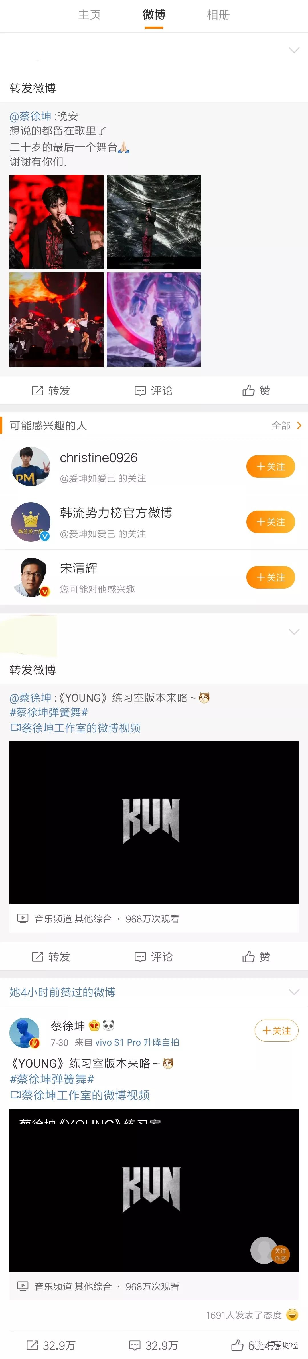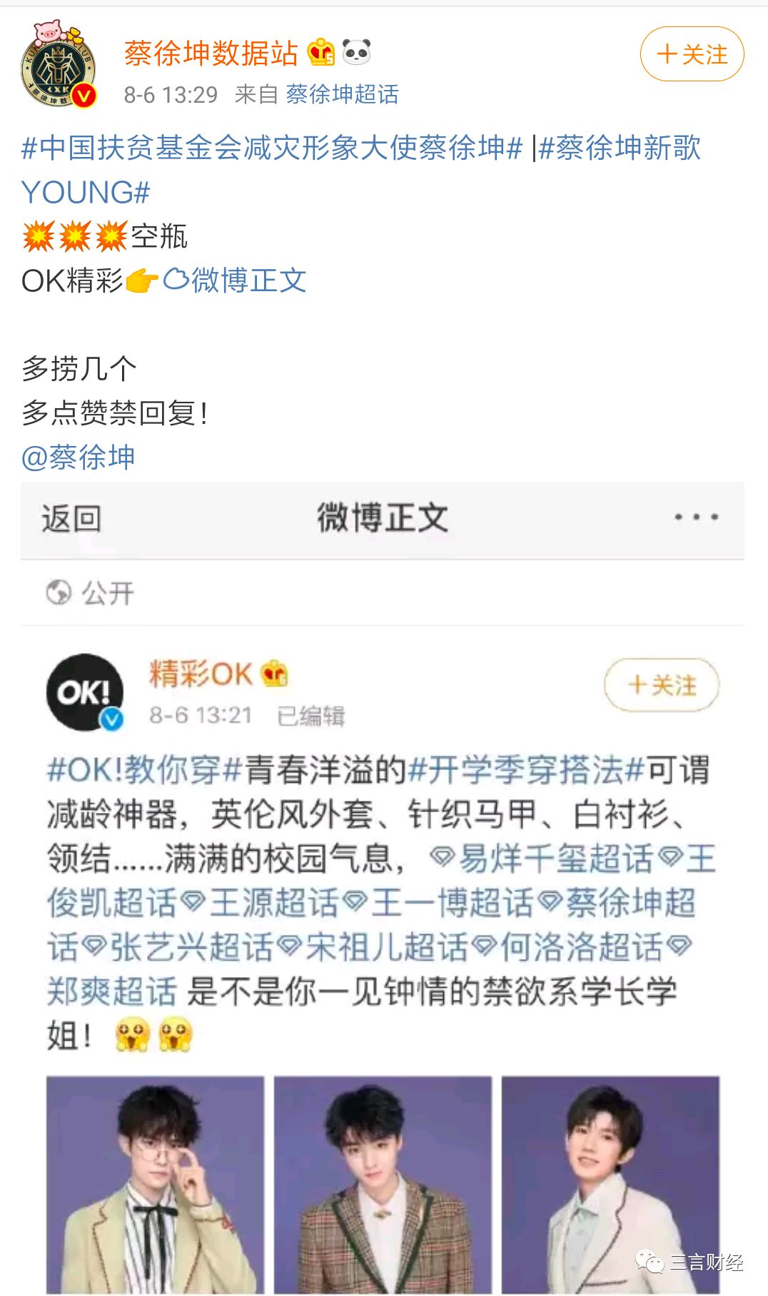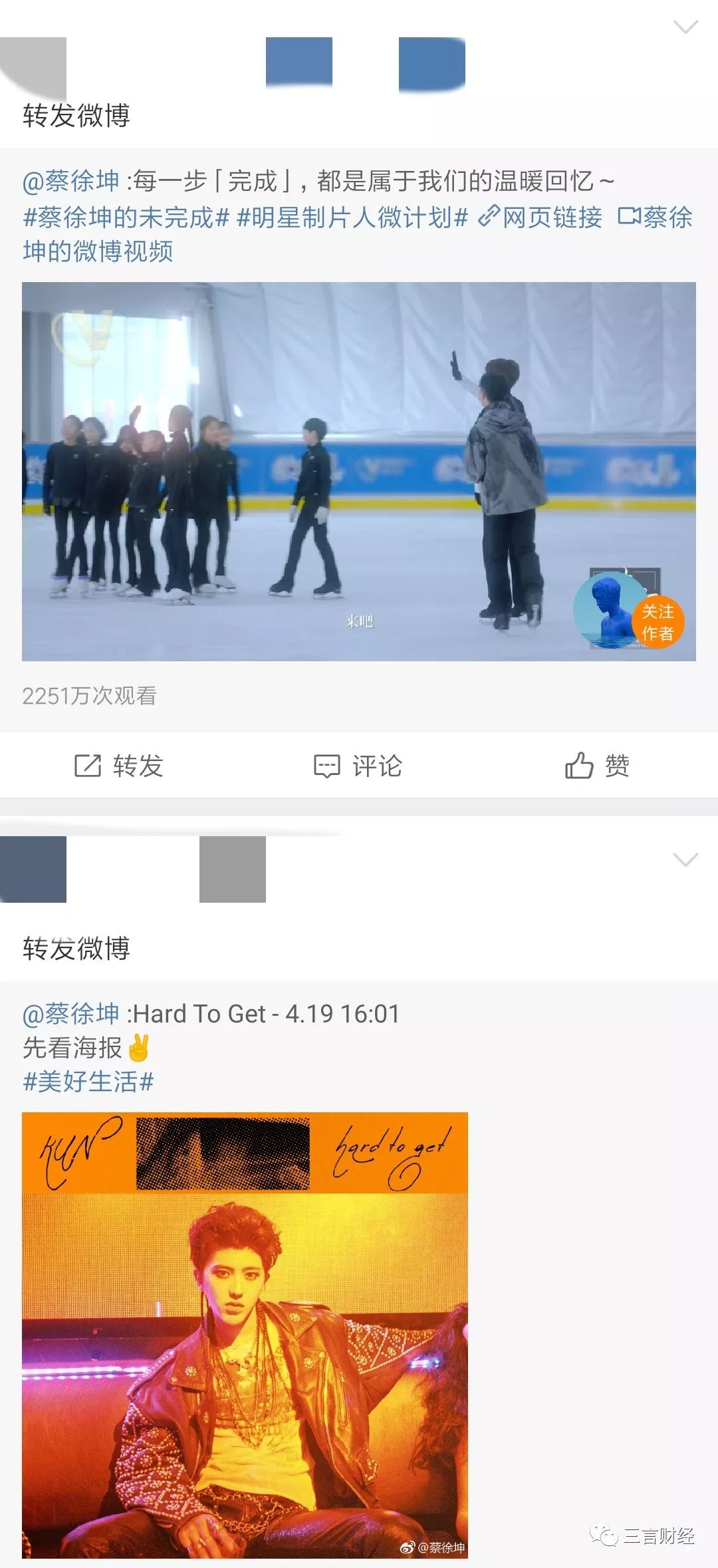 今年1月,央视新闻报道蔡徐坤新歌微博转发次数过亿,以3.37亿人的微博用户比例来看,相当于每3人中就有1人转发了该条微博。