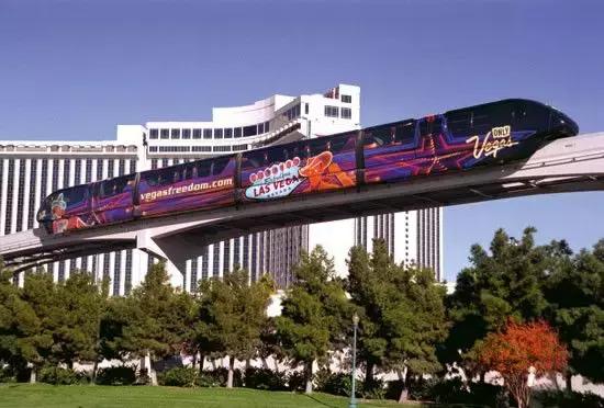 在拉斯维加斯大道上方,有一条长达6.3公里单轨铁道,铁轨上行驶的是著名的拉斯维加斯单轨列车,这一列车不需要驾驶员,从清晨到午夜行驶在游人交织的大道上,将游客送往知名酒店、餐厅和表演场所。