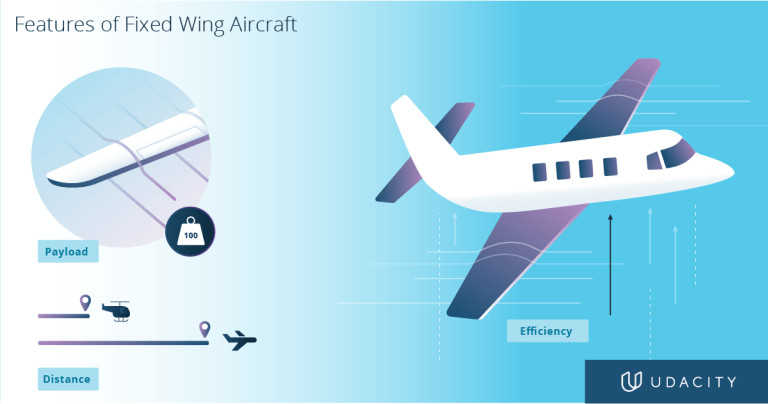 接下来我们再认识固定翼飞机,即我们通常所认识的飞机。固定翼飞机的优点不胜枚举,其中主要有以下四个方面: