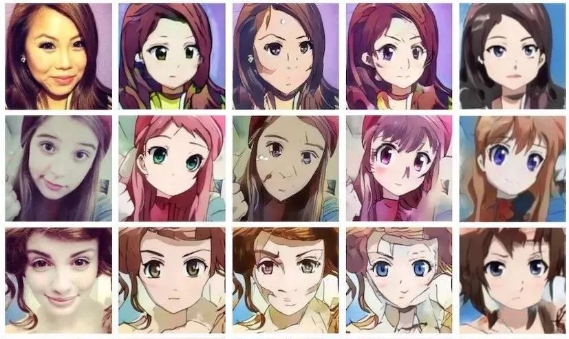 有了这项技术之后,ACG爱好者也可以让自己的头像具有动漫风格了。只是效果仍然不是很令人满意,看起来像是用画笔和颜色对人脸照片描边而已: