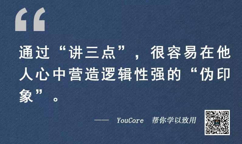 3、“讲三点”能让你营造逻辑性强的“伪印象”。