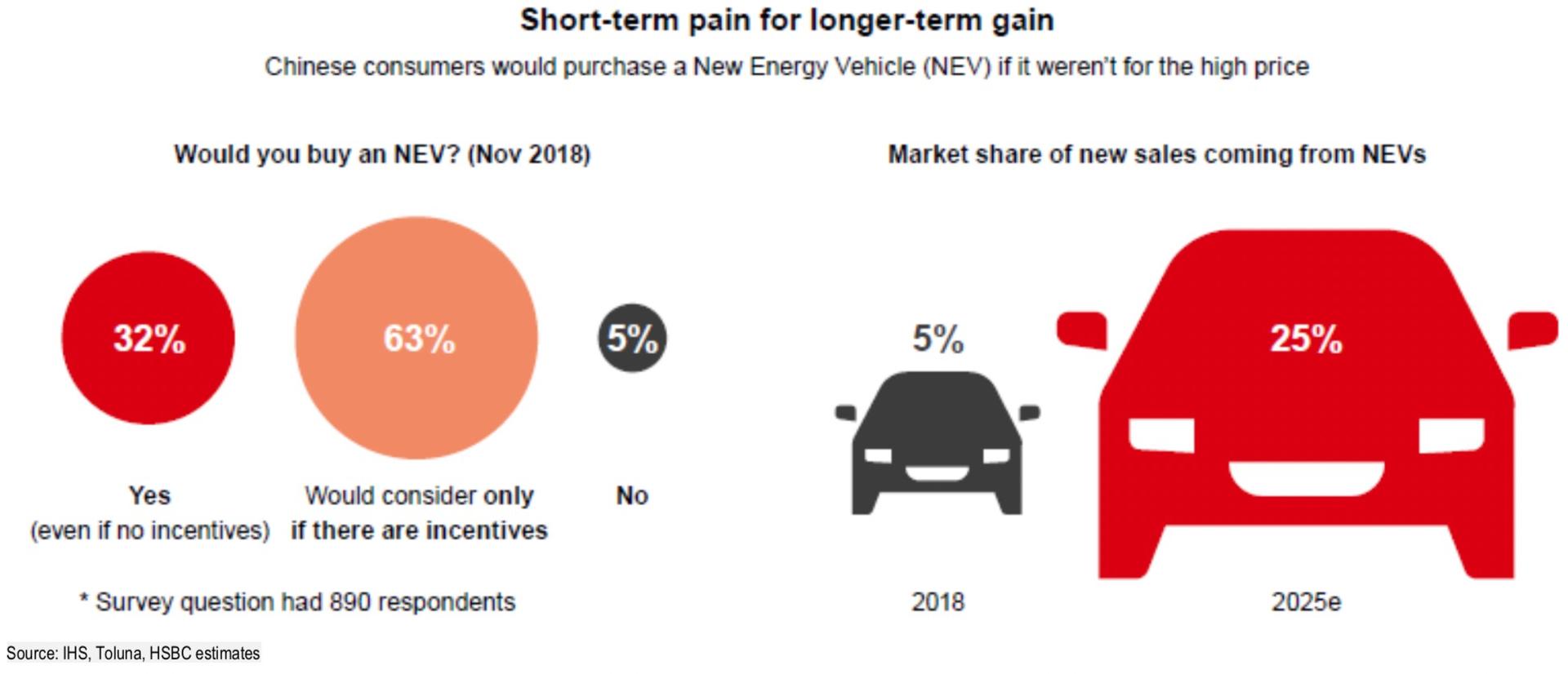 但是,在汇丰银行一项2019年中国汽车行业调查中,中国汽车消费者本质上更喜欢购买新能源汽车。