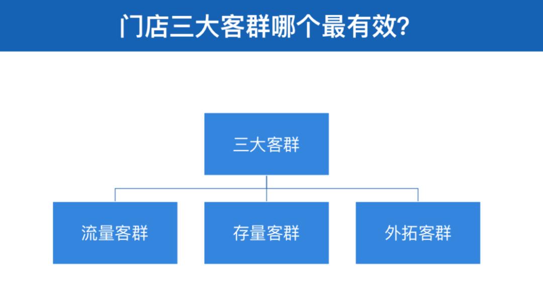 现在能做到把客群分成就已经能满足留住顾客的需求。比如门店客群可以分为三大类,流量客群、存量客群、外拓客群。存量客群是最有价值的客群,门店最应该把精力放在这上面。