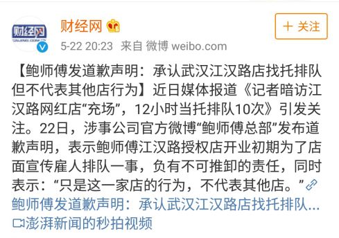 《中国日报》曾报道,鲍师傅开业第一天,一名黄牛至少领了70多人去排队。鲍师傅聘请不同团队假排队至少一个月,有的黄牛一天为他们提供了200人次。