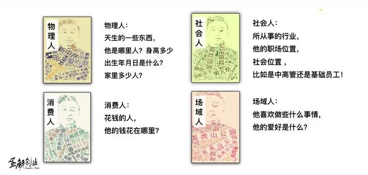 其实有一个模型可以帮忙我们去梳理,那就是四维全息人。四维全息人模式将人的属性分成:物理人、社会人、消费人、场域人。