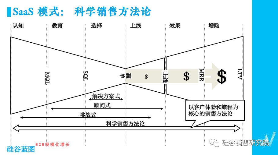 随着二级市场和投资机构对SaaS这种100%通过可重复收入模式的追捧,一种新的销售方法论开始变成主流。这就是我们叫做蝴蝶结的科学销售方法论和新一代的销售漏斗。