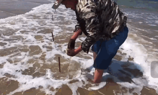 如果在海滩上见到疑似熊掌脚印,别怀疑,里面肯定有个海螺,而且还是那种一见光,就会疯狂喷水,喷完就变成small螺的品种。