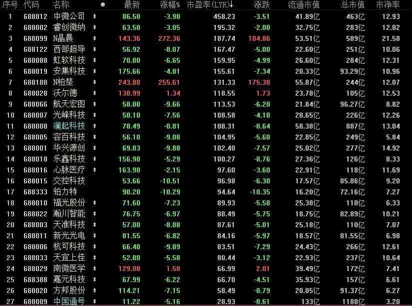 二则科创板开闸3周多来,始终处于炒作亢奋状态,截至最新一个交易日(8月8日),其中市盈率最低的中国通号(28倍),其港股(HK:03969)市盈率仅为13倍;而半导体产业链企业中微公司(SH:688012),市盈率则达到了458倍——可见其中的估值泡沫还是极为可观的。