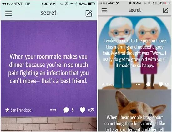 不同的是,David认为Secret是一个树洞,更重要的是情感的表达和共鸣,因此平台对恶意的内容设立了严格的过滤机制,更多地向用户展示温暖的内容。而无觅团队则在介绍秘密时称: