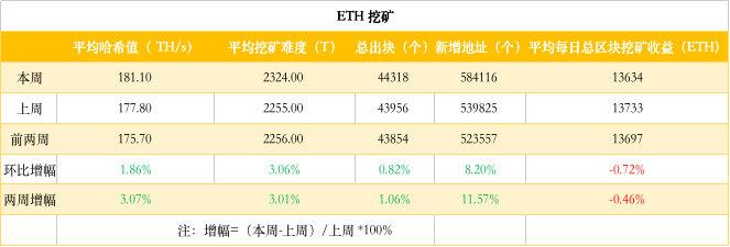 etherchain.org数据显示,目前平均挖矿难度 2324 T,环比上涨 3%;平均算力微涨 1.8%,暂报 181 TH/s;矿工活跃度提升,新增地址环比上涨 8%。