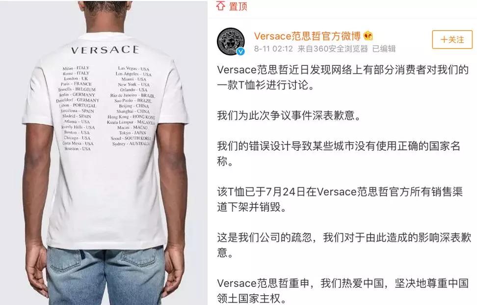 Versace不是第一个在中国领土问题上犯忌的品牌。