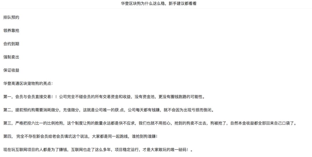 尽管有看似光鲜的背景,但结合一位熟悉盘圈的匿名人士的说法,「区块狗」满足一个盘圈项目的所有特征: